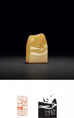 AN ENTERTAINING SHOUSHAN STONE ‘FIGURE’ SEAL ENGRAVED BY WANG TI