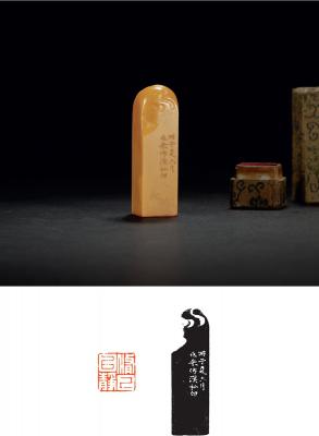 AN ENTERTAINING LIGHTLY CARVED SHOUSHAN STONE SEAL WITH CLOUD PATTERN BY CHEN JULAI