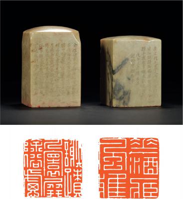 TWO ENTERTAINING QINGTIAN STONE SEALS ENGRAVED BY LI LIANGYU