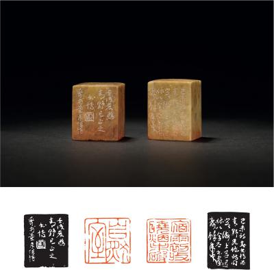 TWO ENTERTAINING QINGTIAN STONE SEALS ENGRAVED BY REN SHUBO