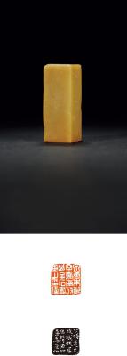 QING DYNASTY A QINGTIAN STONE SEAL ENGRAVED BY HU JUE
