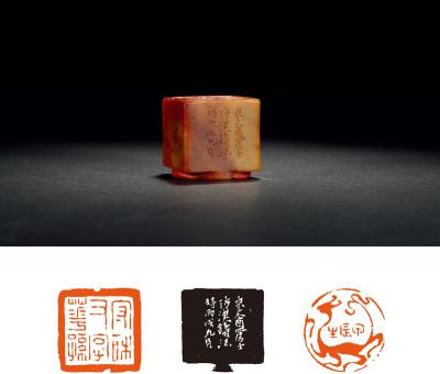 QING DYNASTY A TWO-SIDE QINGTIAN STONE SEAL ENGRAVED BY ZHAO MU FOR MAO CHENGJI'S PRIVATE USE