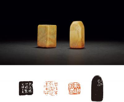 QING DYNASTY TWO QINGTIAN STONE SEALS ENGRAVED BY ZHAO MU AND QIAN SHOUTIE FOR THE PRIVATE USE OF LI BAOZHANG, ETC.