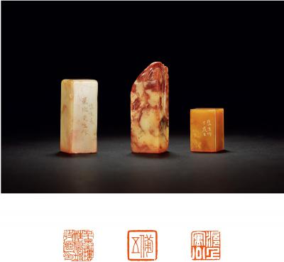 QING DYNASTY THREE SHOUSHAN STONE SEALS ENGRAVED BY LU TAI FOR THE PRIVATE USE OF XU RUFU, WANG LANPO, ETC.