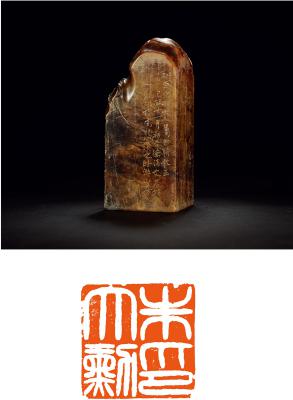 QING DYNASTY A SHOUSHAN STONE SEAL ENGRAVED BY ZHU FU FOR ZHU DAXUN’S PRIVATE USE