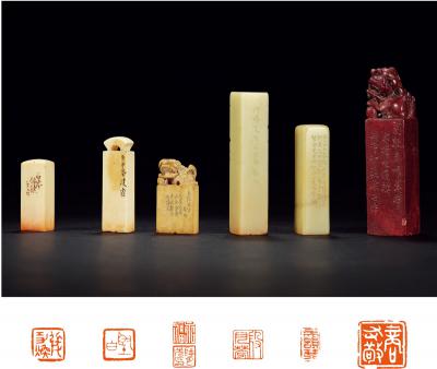 SIX SEALS ENGRAVED BY TANG ZUISHI, ZOU MENGCHAN, YU SHUO, YU ZHENG, LING XU, ETC.