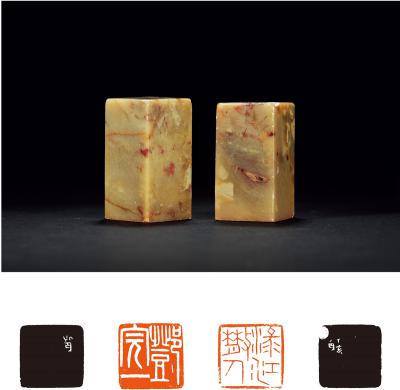 A PAIR OF CHANGHUA BLOODSTONE SEALS BY SHOU SHIGONG