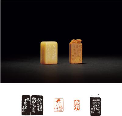 TWO SHOUSHAN STONE SEALS ENGRAVED BY ZHAO GUNI AND WANG DAXIN