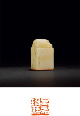 印文: 禹功珍藏 边款: 白茶制。 A SHOUSHAN ‘GAOSHAN’ STONE ‘BEAST’ SEAL 尺寸: 2.5×2.6×4.4cm 估价: 15,000-25,000 元