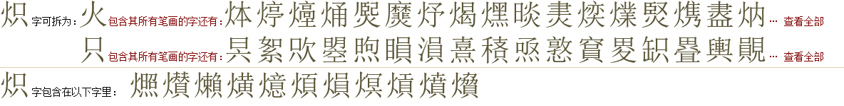 又如:炽火(炽燎。烈火);炽焰(烈焰);炽火(燃点灯烛);炽腾(火势猛烈,火苗上窜)